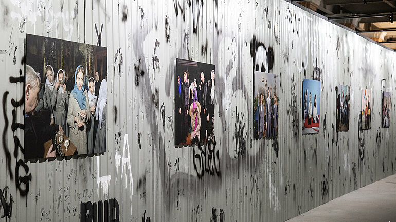 Obabich means "on/at/from both sides". Photographers Viktor Marushchenko and Mark Neville have at different times created images of people in their everyday environment: Marushchenko fifteen years ago in the Donbas and Neville in the year 2017, portraying those displaced by the war as well as ordinary life in Ukraine. Curated by Jerzy Onuch, the exhibition offers us to look at borders of the imaginary or physical neighbourship between people. Ukrainian artist Sasha Kurmaz contributed a graffiti marking the steel wall of the gallery.