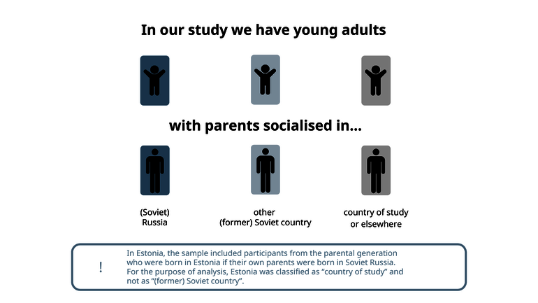 Estonia has had a large Russian-speaking population for decades due to Soviet-era relocations. To reflect this long-standing presence, we defined (Soviet) Russian background not only through the parents but also the grandparents. While this older generation was not directly surveyed, their background helped us to identify and to include families with roots in the Russian-speaking community, ensuring a sample that covers the social reality in Estonia.
